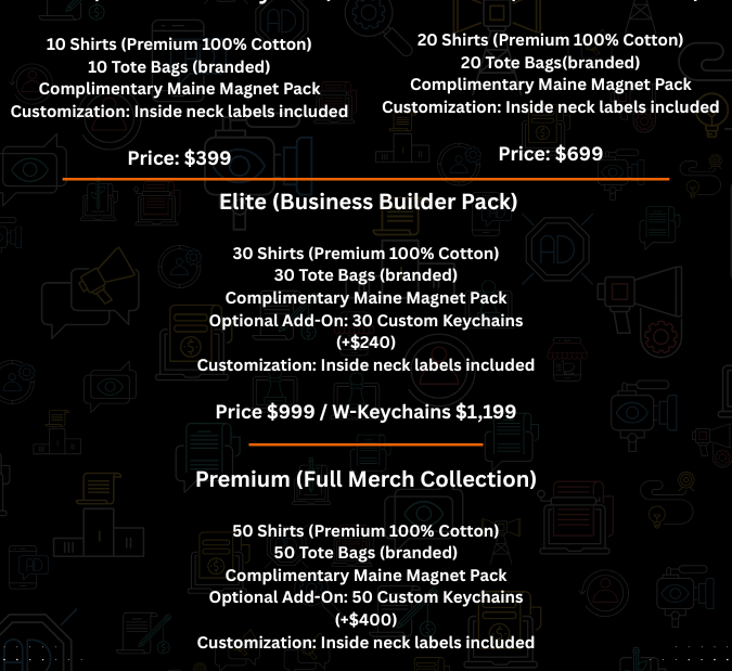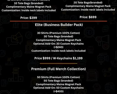 Explore our tiered promotional merchandise packages designed to elevate your brand.
